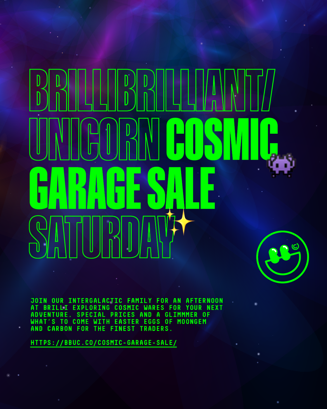 Join our intergalactic family for an afternoon at brilli exploring cosmic wares for your next adventure. Special prices and a glimmmer of what's to come with easter eggs of moongem and carbon for the finest traders...